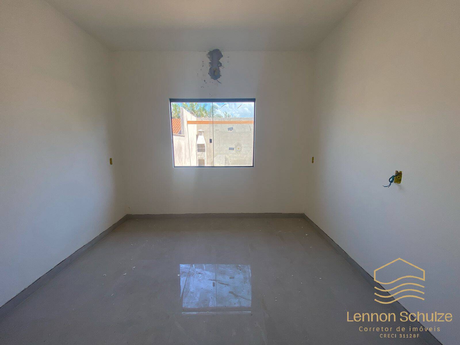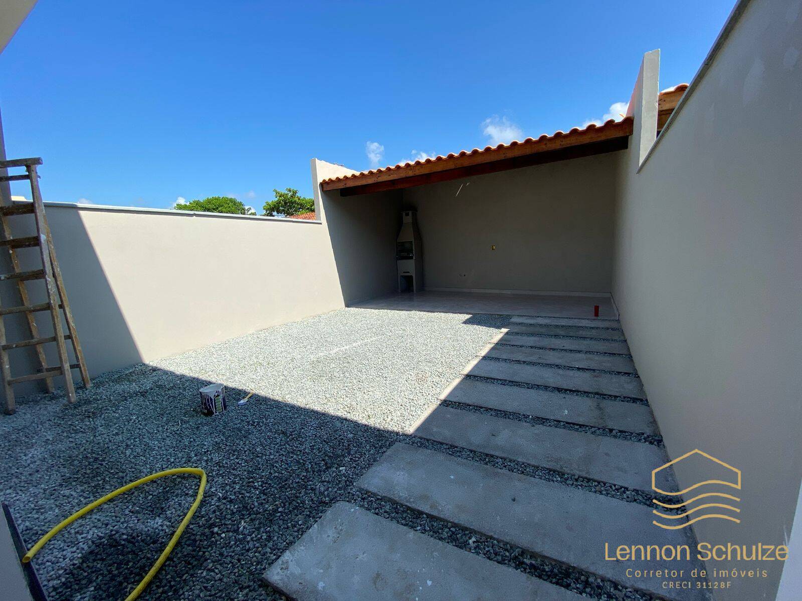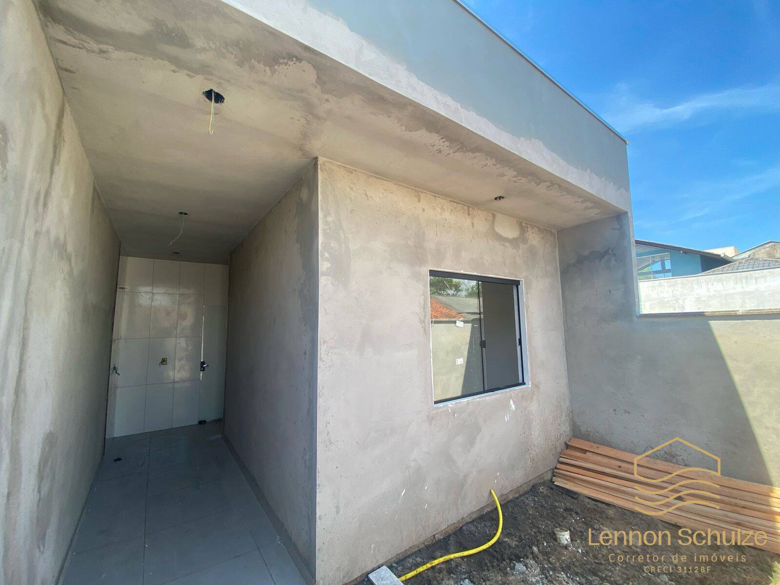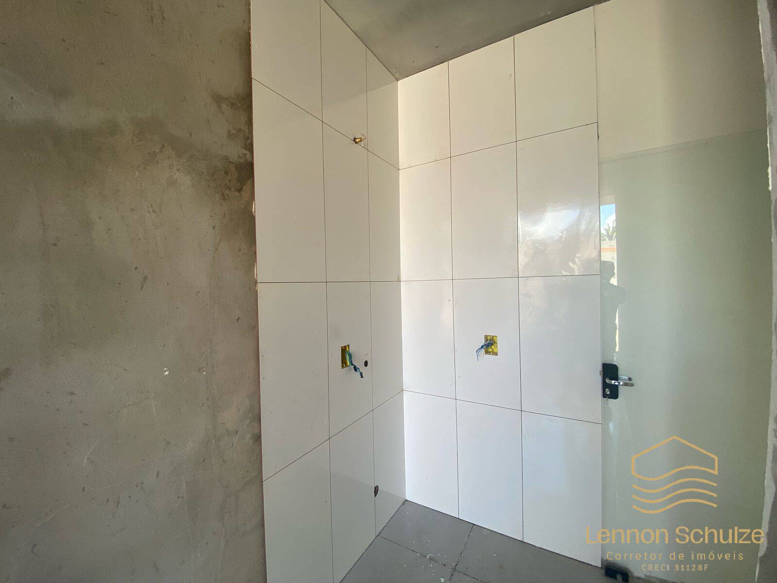 Código 0054- Casa Geminada unidade 01 (em fase de acabamento),terreno amplo com área total de 150,00m² (5,00x30,00), área construída de 81,36m², este geminado conta com excelentes 3 dormitórios, sendo que 1 é suíte, sala/copa/cozinha conjugada, banheiro social, lavanderia e vaga de garagem