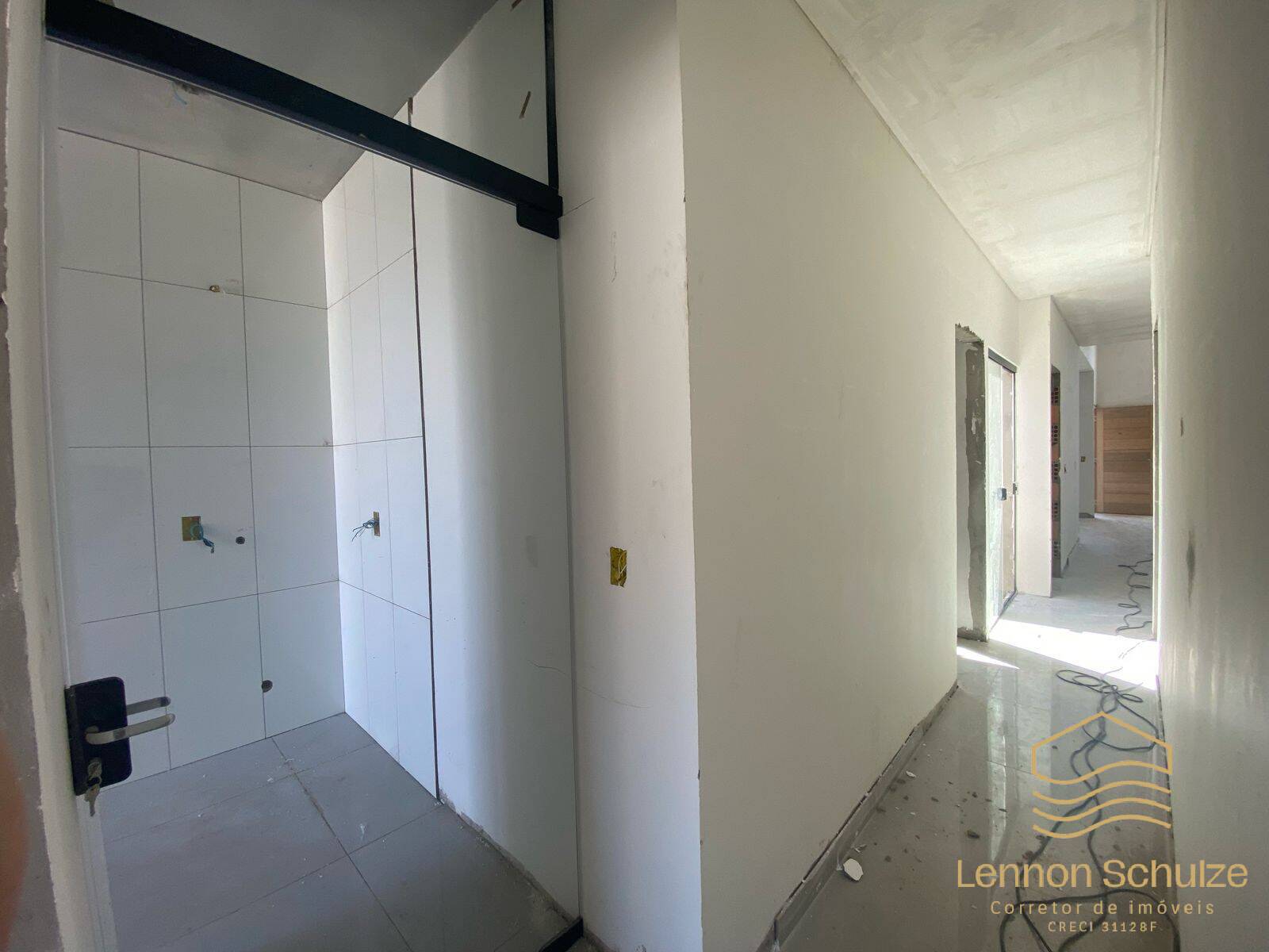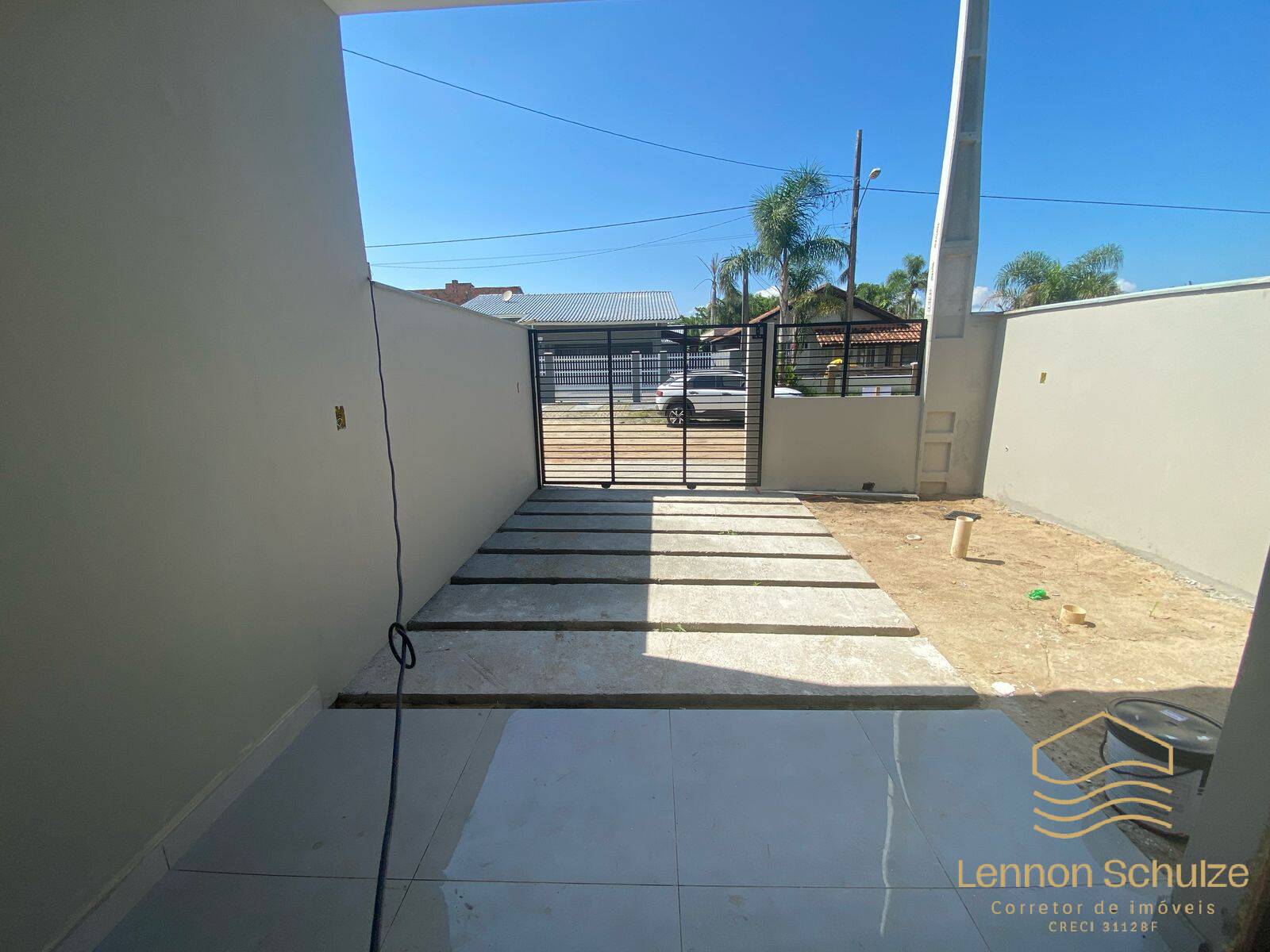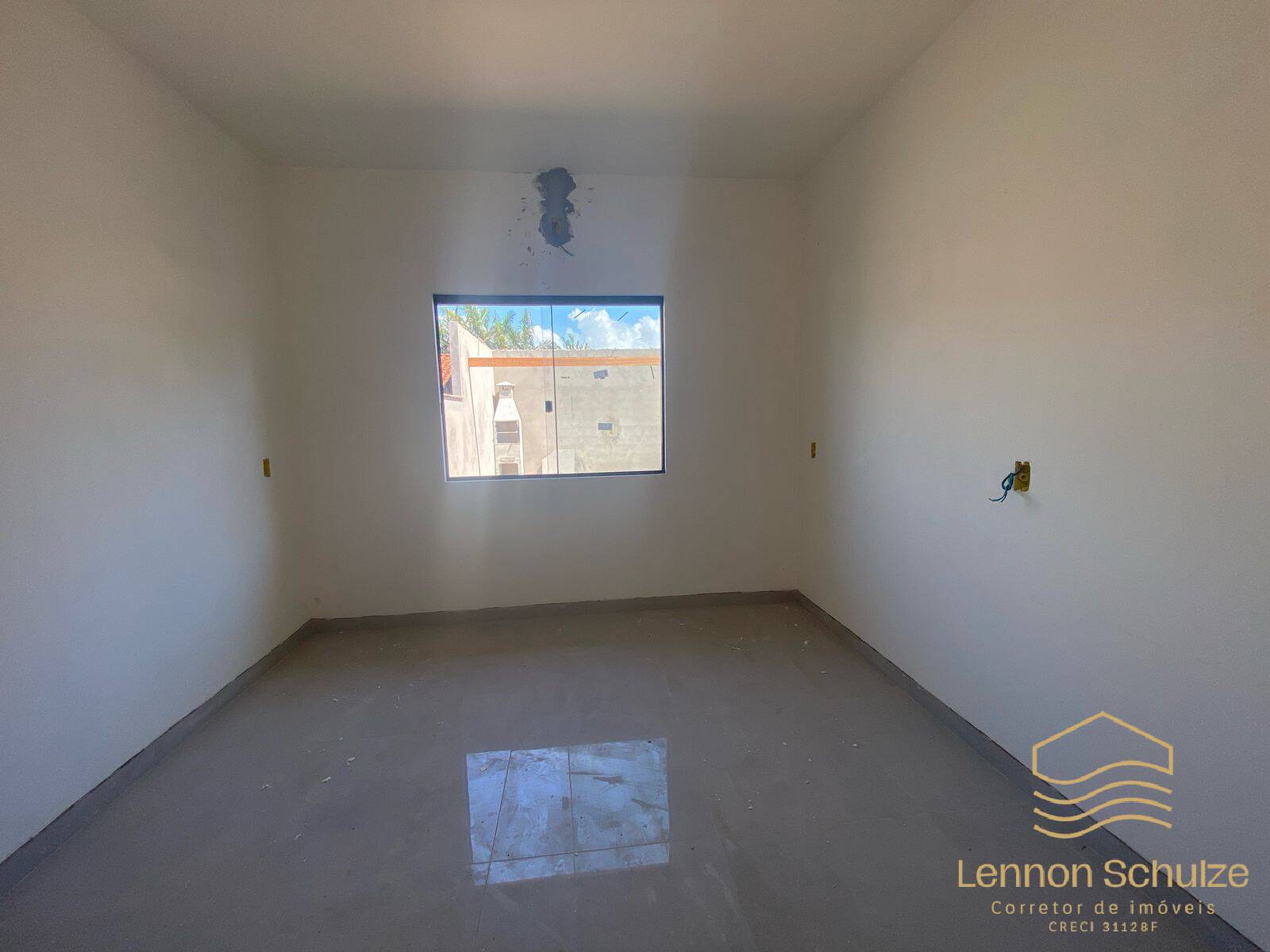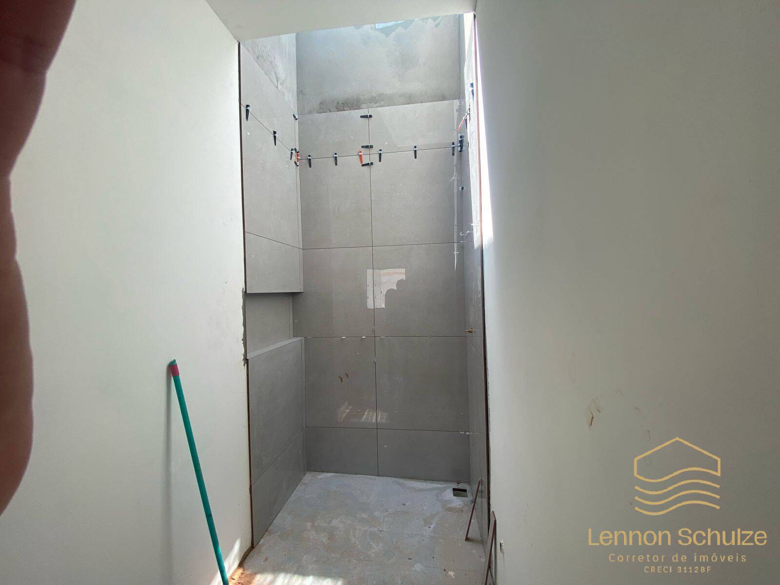 Código 0054- Casa Geminada unidade 01 (em fase de acabamento),terreno amplo com área total de 150,00m² (5,00x30,00), área construída de 81,36m², este geminado conta com excelentes 3 dormitórios, sendo que 1 é suíte, sala/copa/cozinha conjugada, banheiro social, lavanderia e vaga de garagem